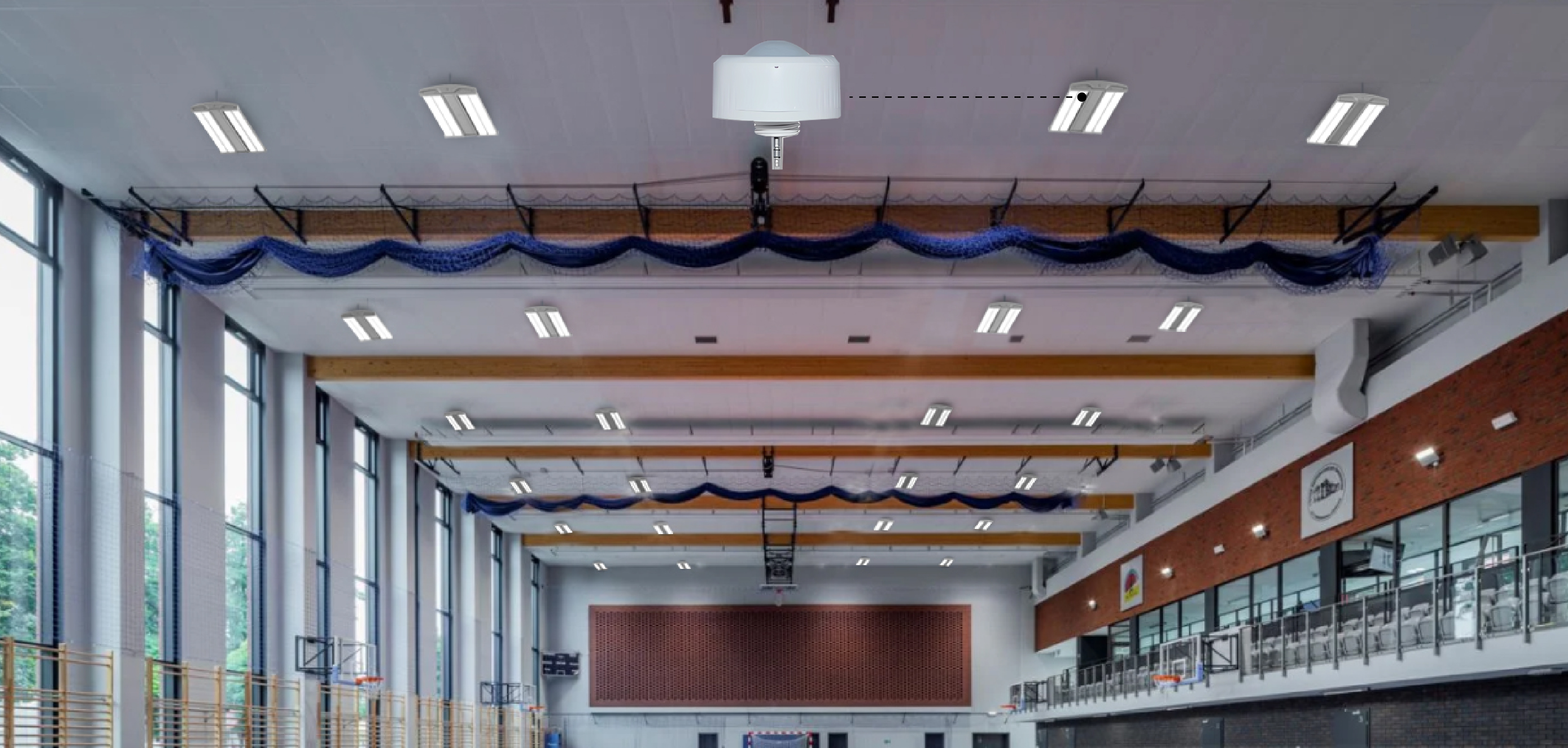 The BMS-S6-PIR-DC1-BLE-SR-PPM uses PIR motion detector architecture and passive infrared (PlR) technology for improved detection coverage in high bay applications.